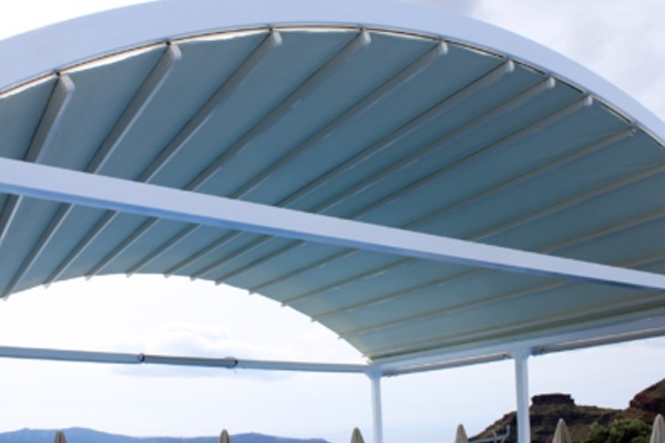 Αυτόνομη κουρμπαριστή τεντοπέργκολα για μεγάλα μήκη προβολής έως 6.00m. Ιδανική για ελεύθερους χώρους. 100% κατασκευή αλουμινίου.
