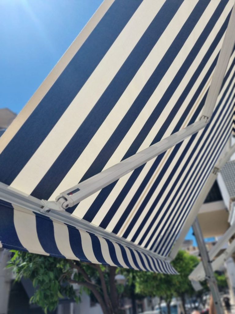 Οι τέντες με βραχίονες δίνουν την επιλογή στον πελάτη να σταματήσουν στο σημείο που επιθυμεί, με χειροκίνητη ή ηλεκτροκίνητη λειτουργία. Οι βραχίονες WIND, δικής μας κατασκευής, είναι χυτοί από κράμα αλουμινίου, με διπλά ελατήρια προγαλβανισμένα και διπλά ή τετραπλά συρματόσχοινα inox A2 με αντοχή έως 8 μποφόρ. Όλα τα μεταλλικά μέρη είναι ανοξείδωτα και δεν χρειάζονται στήριξη στα κάγκελα. Είναι πιστοποιημένο προιόν και πληροί τις απαιτήσεις της σήμανσης CE σύμφωνα με τα πρότυπα του ΕΝ13561/ΕΝ1932 και του κανονισμού 305/2011. Παρέχουν 10ετή εγγύηση και δυνατότητα service και ανταλλακτικών.